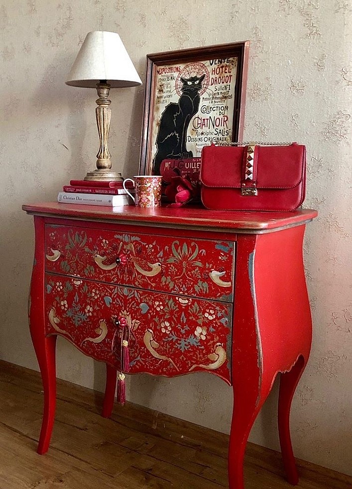 Волшебный по своей красоте трафарет, такие мельчайшие детали! Любой неказистый предмет с этим трафаретом будет выглядеть восхитительно! У меня пока не хватает умения работать с такой красотой, и трафарет немного получился смазанным, но, как ни странно, этому трафарету ничего не страшно! В смазанном виде эффект получился более винтажным! Мне очень понравилось!