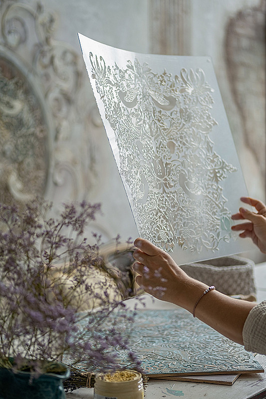 Один из лучших трафаретов в моей коллекции. Детализированный, четкий рисунок, шикарно работать плотными пастами и штукатурками