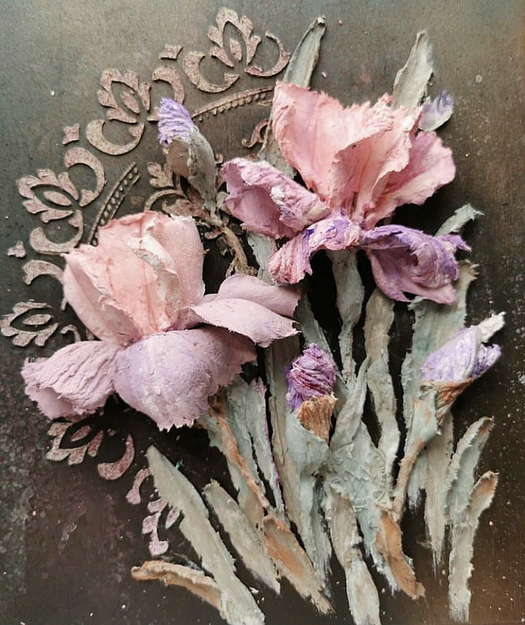 В прорези этого универсального инструмента удобно наносить краску различными способами: спонжем, круглой кистью или аэрографом. Трафарет легко вдавливается в глину, а также подходит для декоративной штукатурки. Для нанесения акриловых фактурных гелей наилучшим способом является использование шпателя, который также удобно использовать для удаления излишков краски без повреждения трафарета.