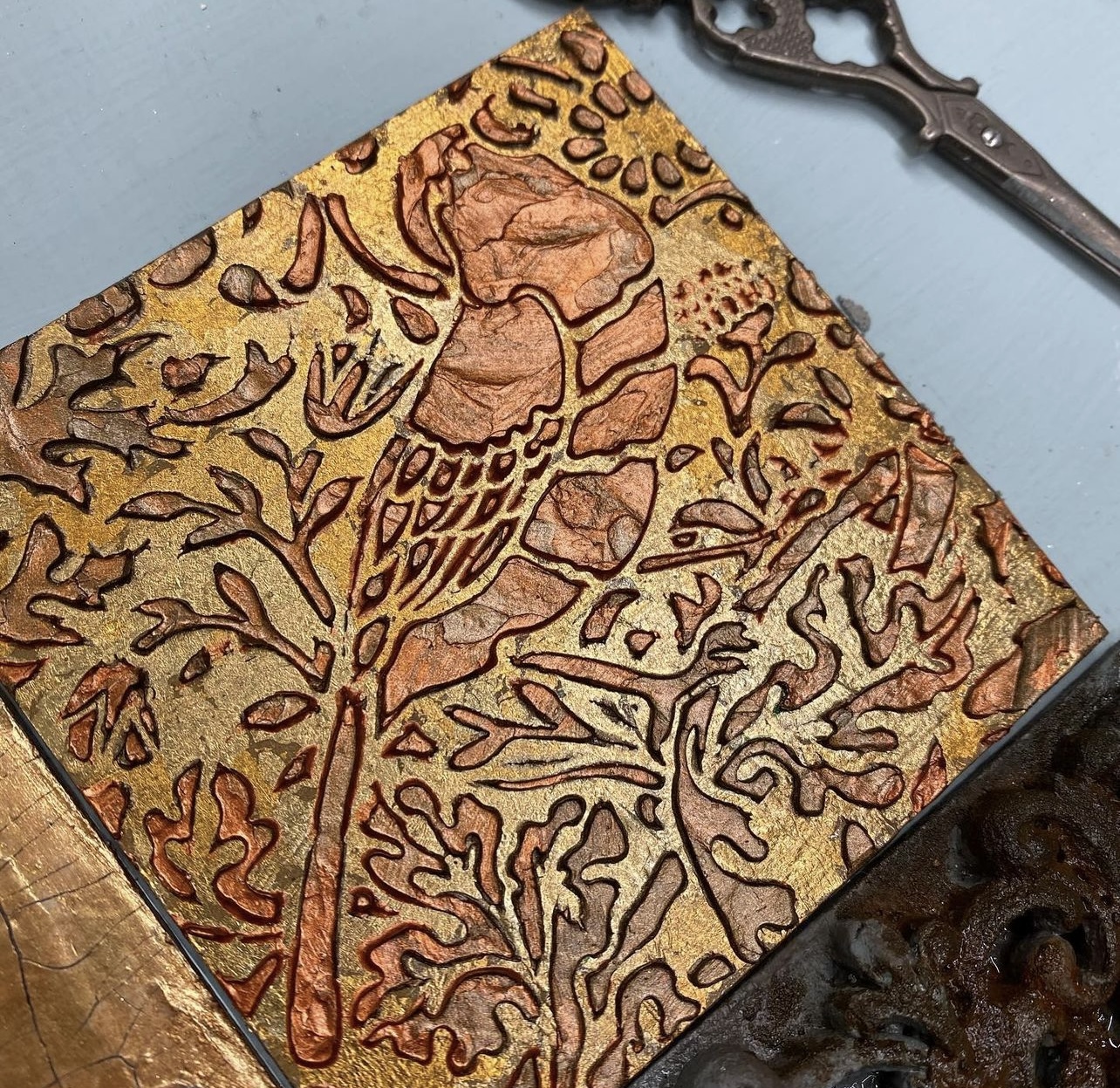 В прорези этого универсального инструмента удобно наносить краску различными способами: спонжем, круглой кистью или аэрографом. Трафарет легко вдавливается в глину, а также подходит для декоративной штукатурки. Для нанесения акриловых фактурных гелей наилучшим способом является использование шпателя, который также удобно использовать для удаления излишков краски без повреждения трафарета.